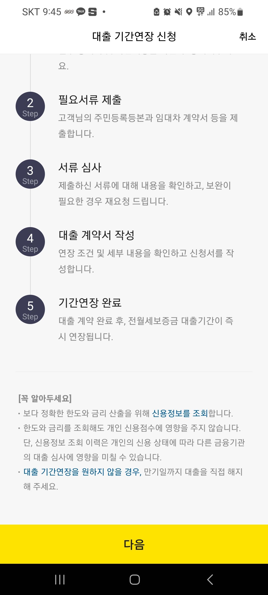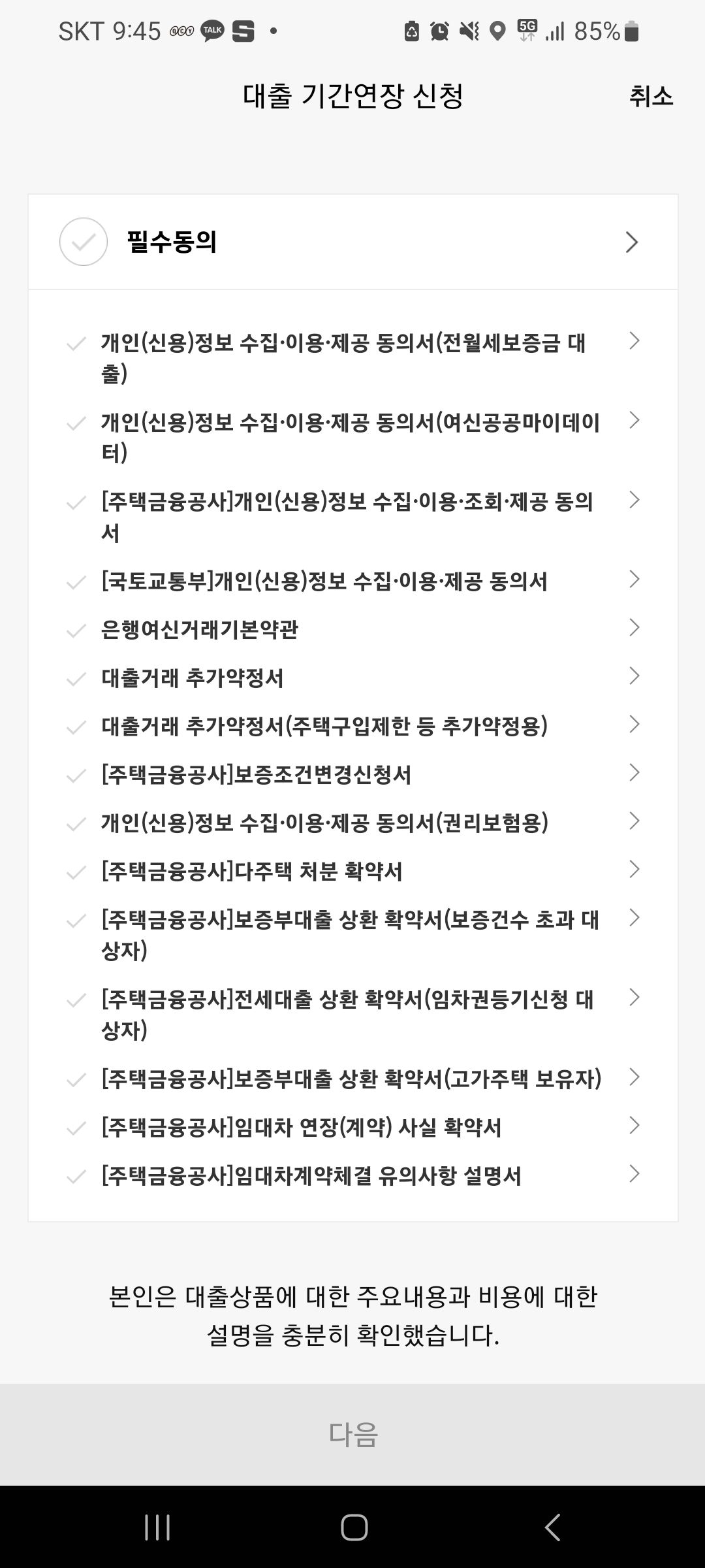 여기까지 확인이 다되면 대출연장이 끝난다.