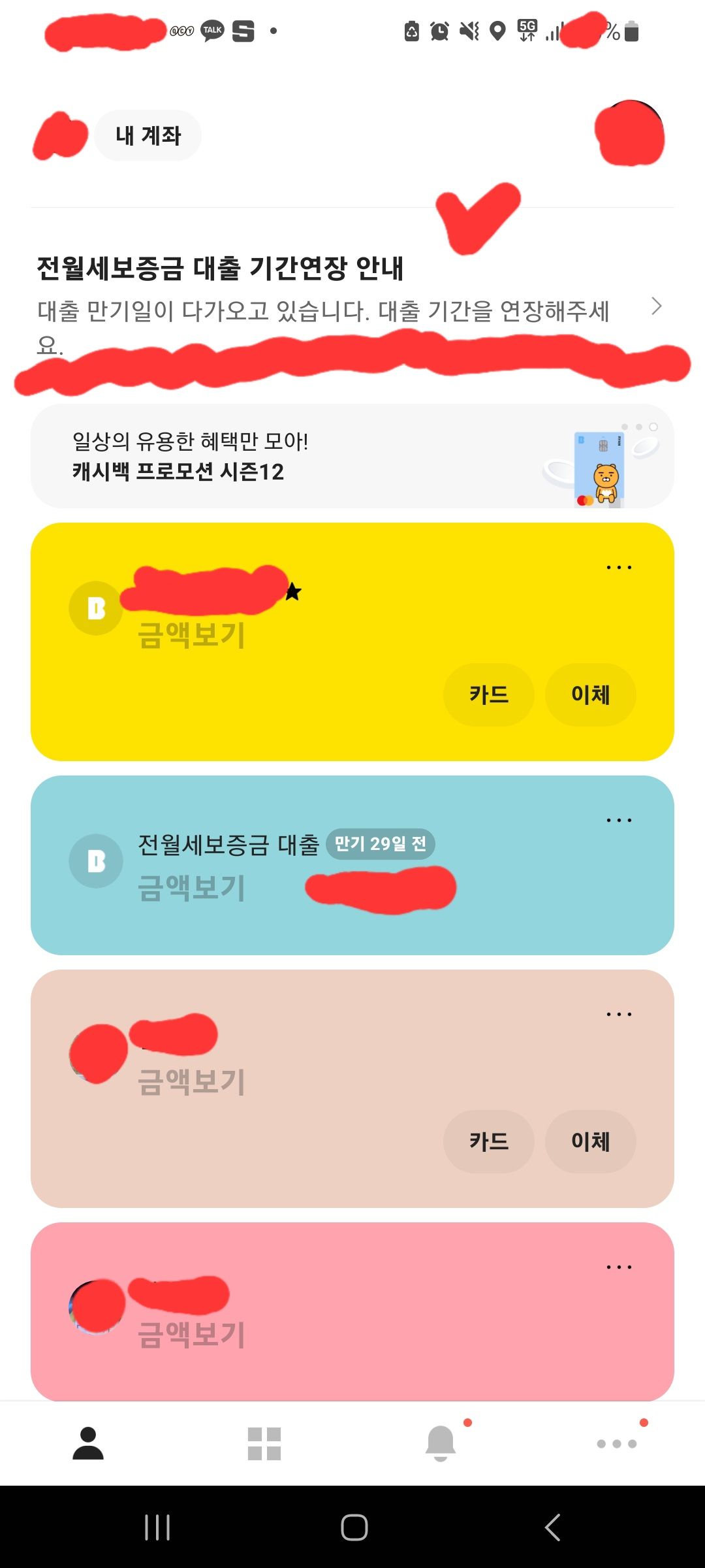 아래 내 전월세보증금 대출 계좌 옆에 만기 29일전이라고 볼수 있다.