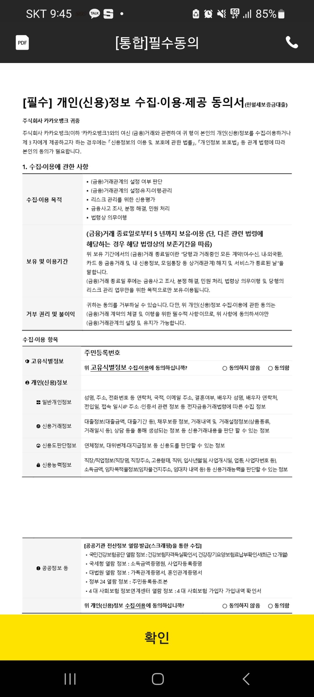 필수 동의니 돈 계속 빌리고 싶다면 필수동의 눌러주고 다음 넘어간다.